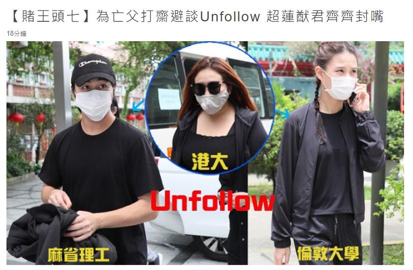 现在赌王去世没多久,二人就互相取关,网友纷纷猜测,是何猷君为了证明自己的成绩,内涵他人花钱上大学,这令何超莲感到十分不满,因而双方产生矛盾而取关。