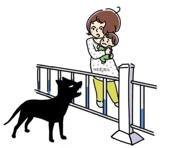 一旦逃跑,会更加激发狗咬人的欲望!如果身旁有围栏、栅栏等,就抱起宝宝以最快的速度躲到后面,挡住恶犬!