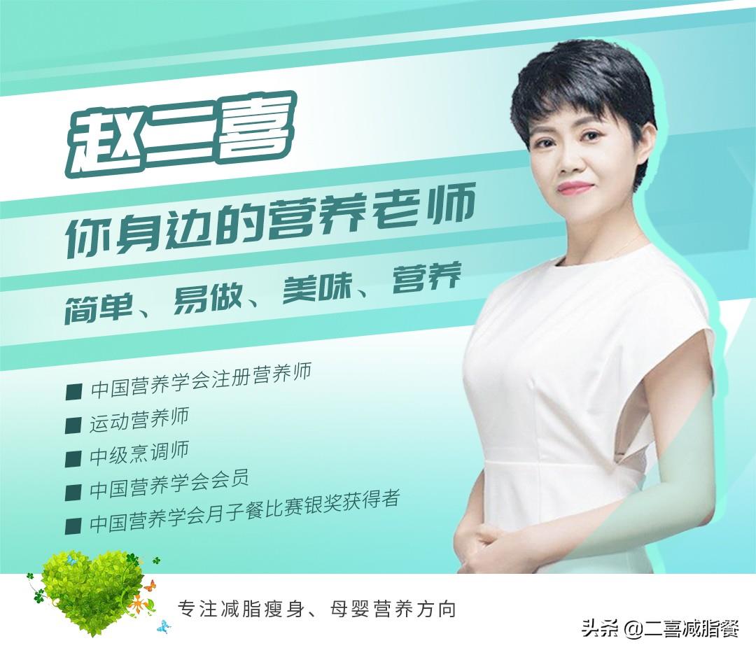 我是二喜,注册营养师+中级烹调师,擅长搭配的减脂饮食,想健康减肥的伙伴,可关注我,几百个食谱,总有一款适合你。