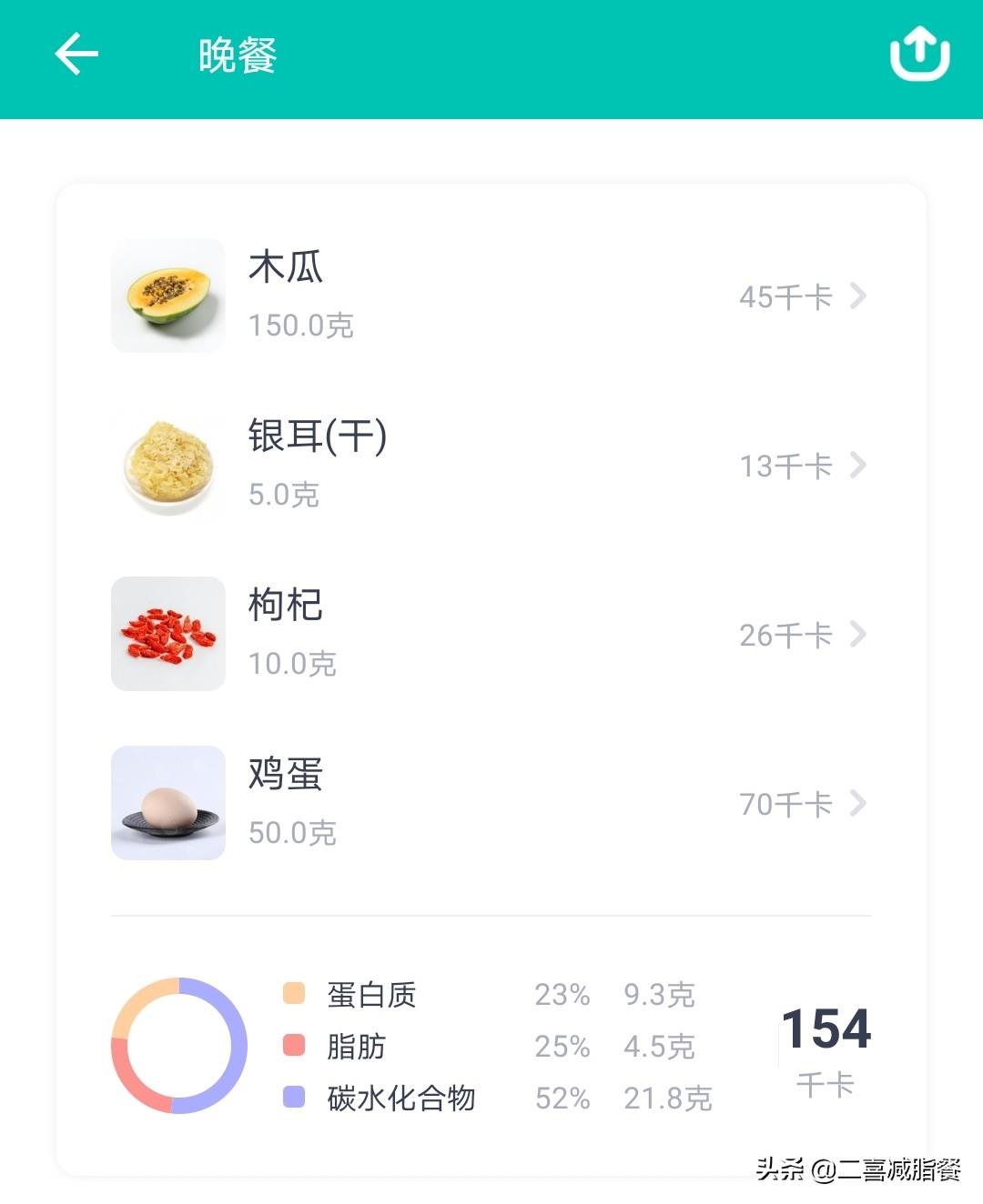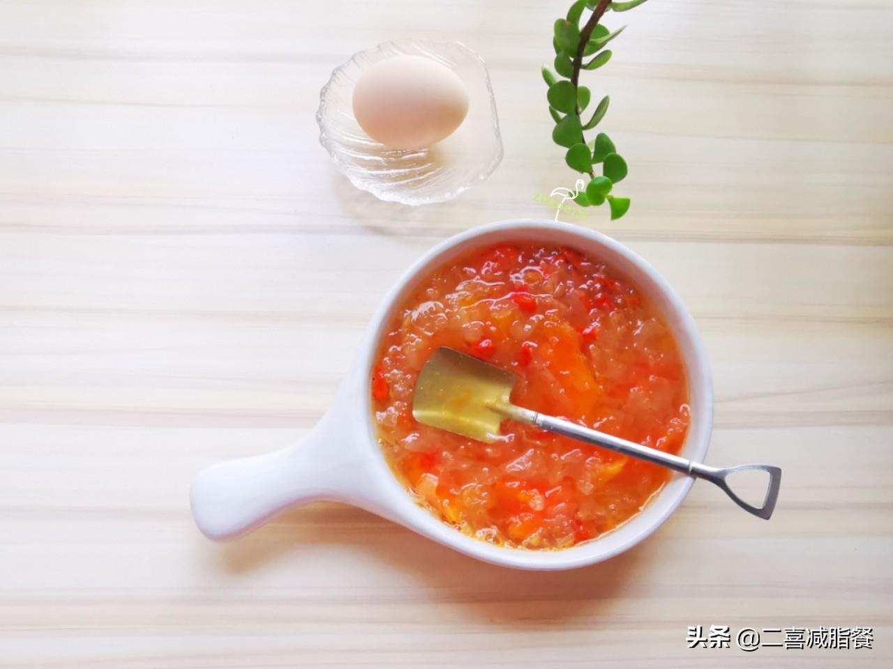 轻断食晚餐:木瓜银耳枸杞羹+蒸鸡蛋,热量154大卡,产能营养素均衡。