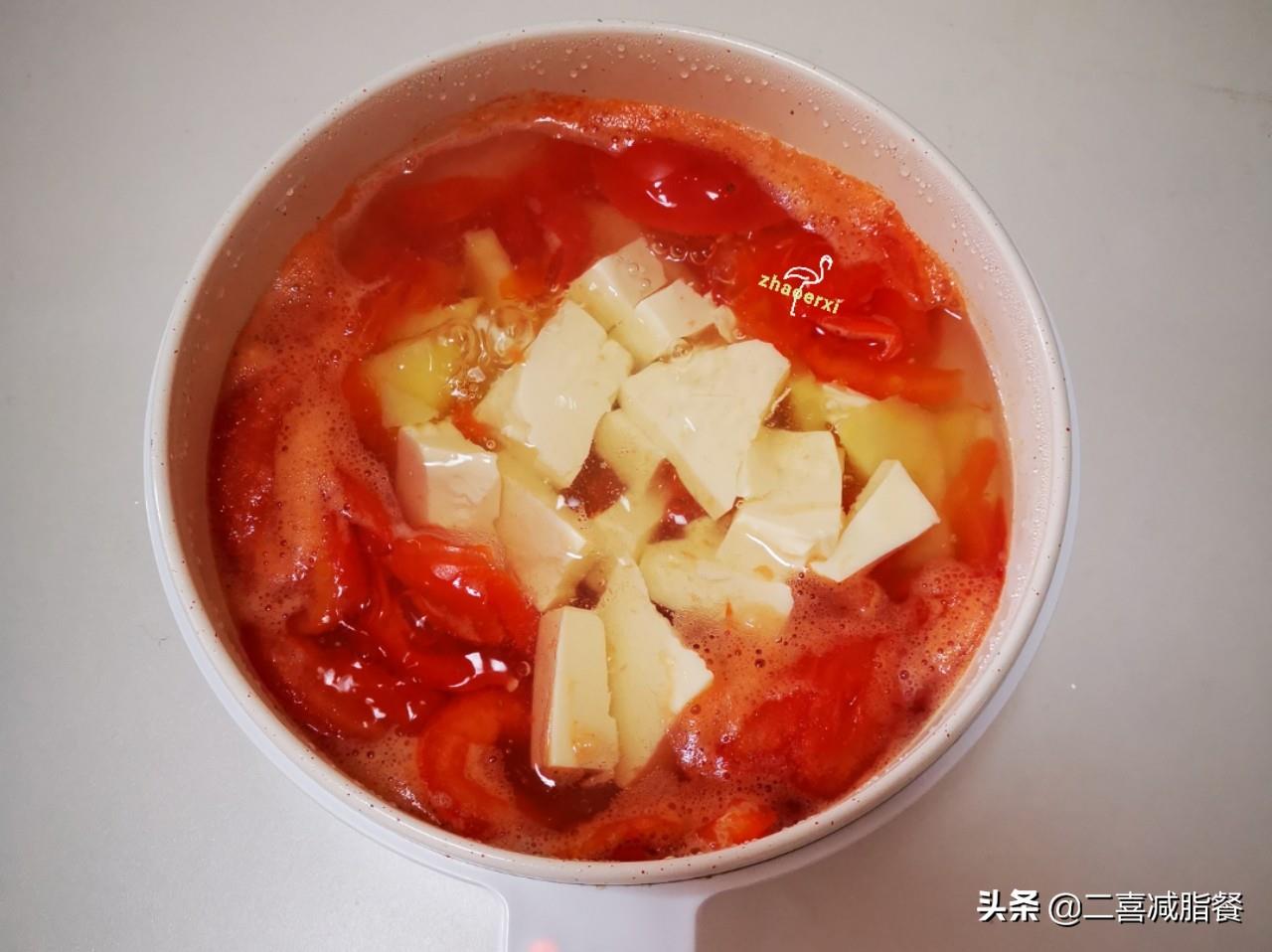 轻断食午餐:豆腐蔬菜汤,热量207大卡,产能营养素均衡。