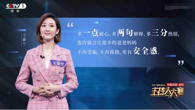 2019年,25岁的王嘉宁参加央视主持人大赛,虽然年纪不大经验尚浅,可是表现却非常惊艳,显得灵气十足,严肃中不乏松弛,幽默中又饱含温情。