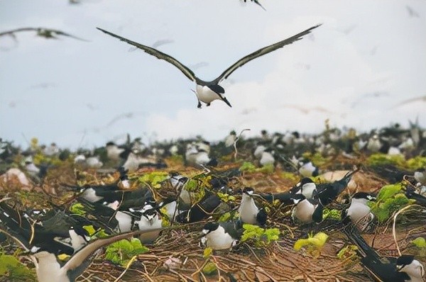 每年开春成群结队的海鸟几乎掩盖住了黄尾屿,咱们可以想象一下成千上万的海鸟齐飞的场景,就与那差不多,海鸟在岛上产卵,数量之多,密密麻麻乱作一团,如果登岛拾荒鸟蛋伸手可得。