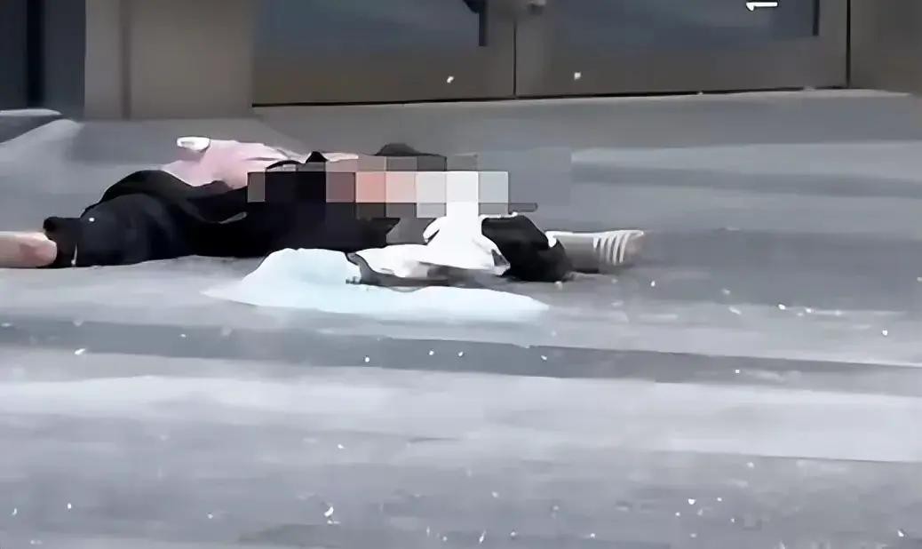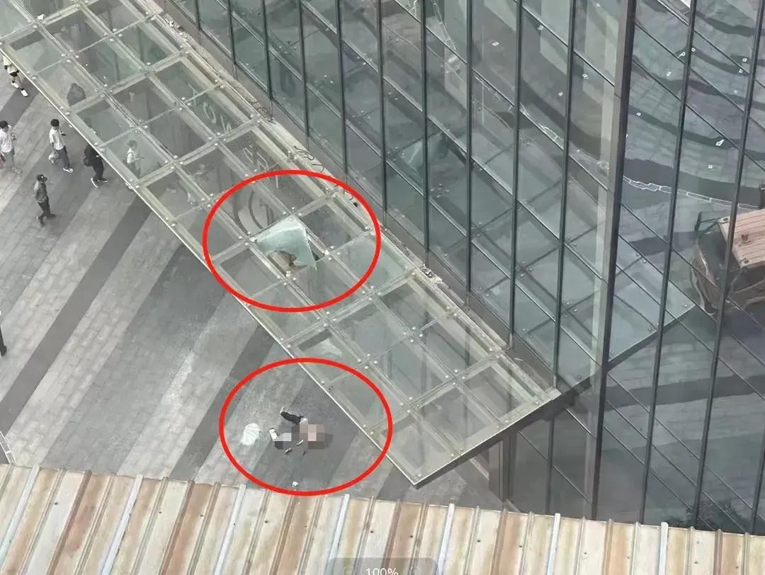很快有网友发布了相关图片,解释了以上疑问。据发布图片的网友表示:女子从高空坠下的时候,身体撞到二楼的平台,女子身体撞碎了二楼平台玻璃,最后落在了地上。