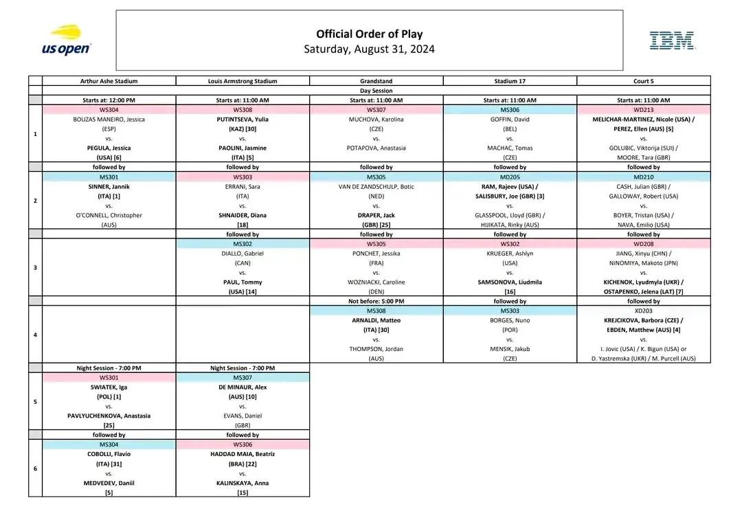 美网9月1日的整体赛程概览