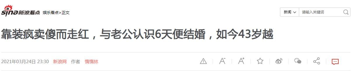 新浪网——靠装疯卖傻而走红,与老公认识6天便结婚,如今43岁越