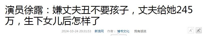 新浪网——演员徐露:嫌丈夫丑不要孩子,丈夫给她245万,生下女儿后怎样了