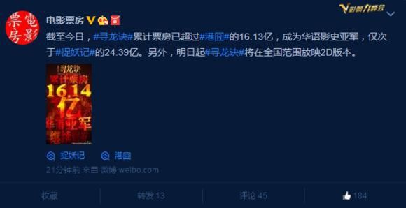 16亿!坐拥华语票房历史亚军 寻龙诀入围12月十大热词榜