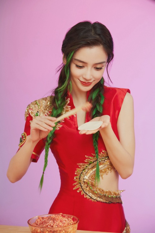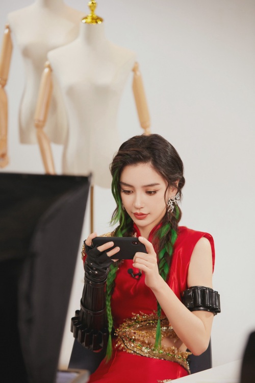 造型也很大胆,绿色挑染+红色旗袍,穿不好就是灾难现场,但是Angelababy的颜值顶住了!真的太美啦~这样的baby各位观众老爷们喜欢吗?