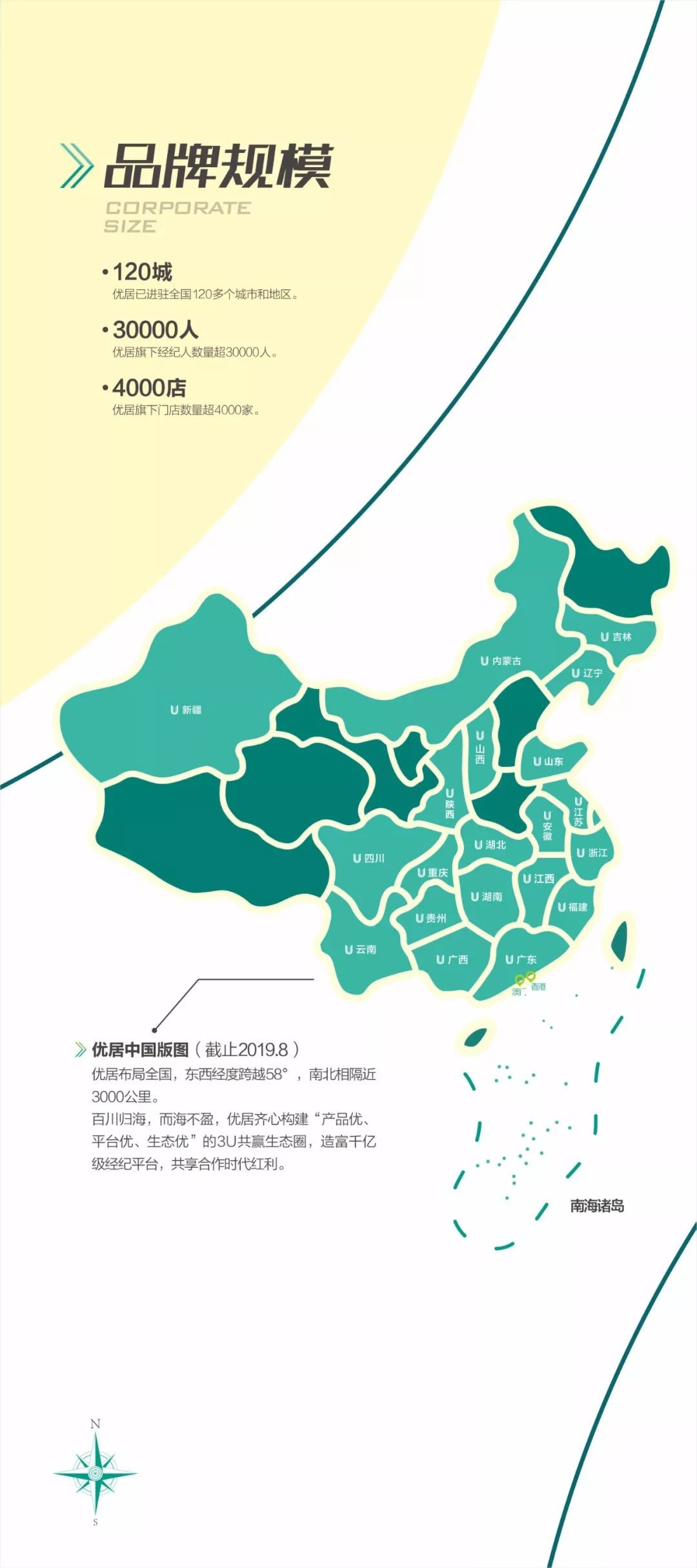 优居目前已进驻南宁、重庆、贵阳、广州、武汉、太原、中山、昆明、成都、西安、衡阳、南京、青岛、烟台、乌鲁木齐、呼和浩特、沈阳、长春、秦皇岛等全国130多个城市和地区,拥有门店数量超6000家,旗下经纪人超30000名。
