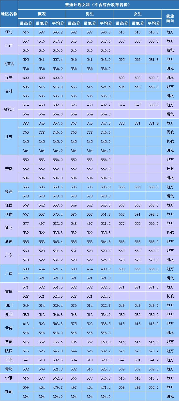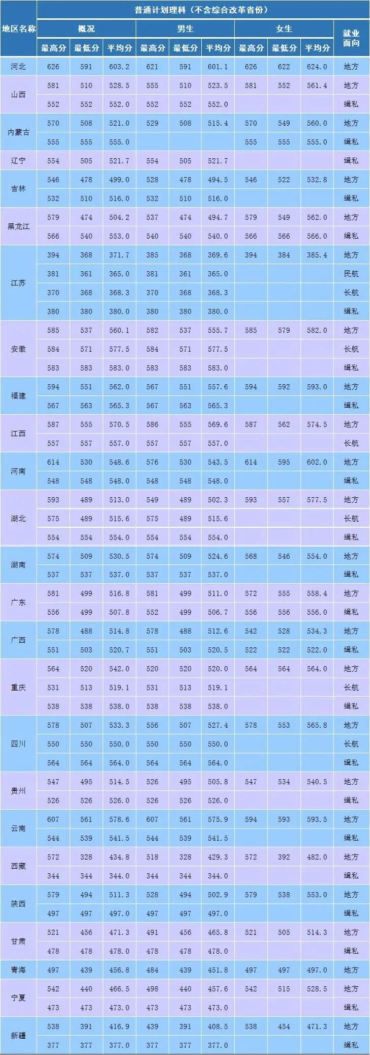 2、2020年分省、分专业、分男女录取最高分和最低分: