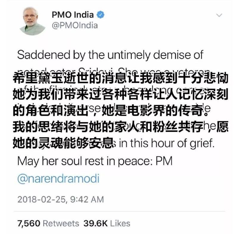 她的逝世,印度总理莫迪亲自在社交网络上发文,话语中是满满的惋惜和不舍