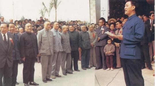 1980年12月13日,番禺宾馆正式开业,由番禺县县长黄伟宁主持开业仪式,出席仪式的嘉宾有何贤先生(前排左一)、时任广州市委书记杨尚昆(前排左二)、广东省原省长梁灵光(前排左三)等。
