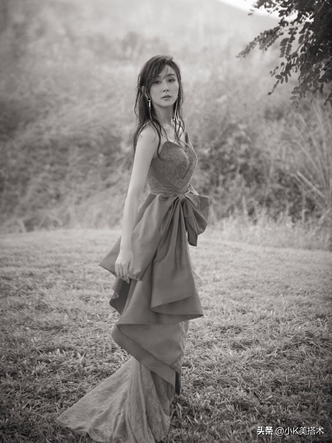 不得不说,胡静的身材保持得实在是太好了!这一件抹胸长裙同样也是十分修身的设计,不过搭配了褶皱式的剪裁,看上去比较考验身材,不过胡静依旧驾驭得非常好。抹胸搭配湿发,性感的锁骨和立体的肩部线条若隐若现,更加性感迷人了!