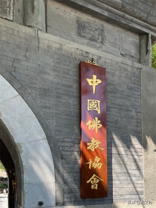 这两个牌匾,一个是竖着悬挂的牌子“中国佛教协会”,另一个镶嵌在门楣上的横额“敕建弘慈广济寺“。