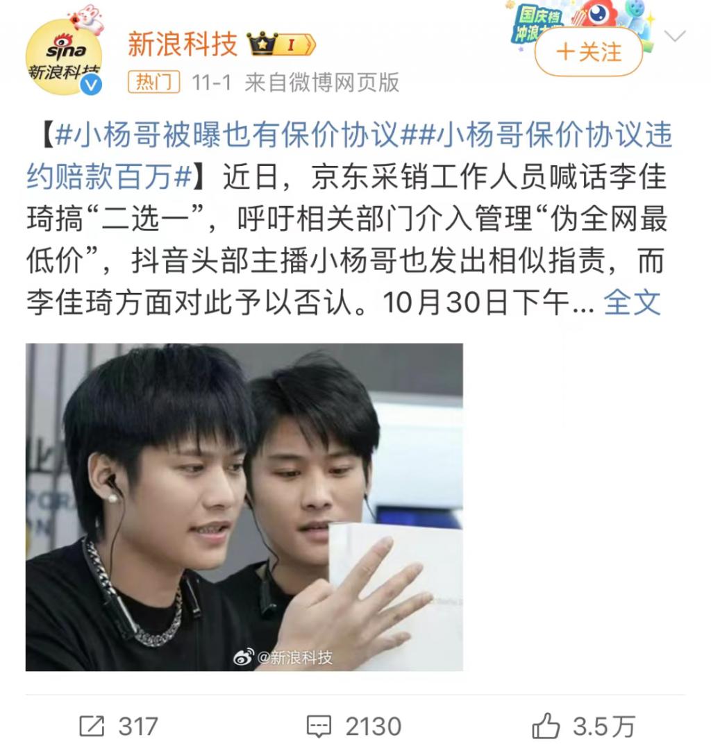因此," 小杨哥被曝也有保价协议 " 的话题迅速冲上热搜。大部分看客都认为头部主播有 " 保价协议 "。
