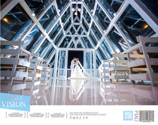 4. 水晶教堂。随着光影的不同表现力多变,充满梦幻和神圣气息的三亚外景教堂主题,通过飘视觉摄影师镜头的诠释,是一张张动人的不可复制的完美婚纱照。