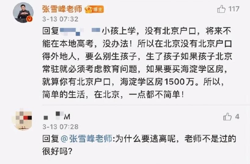2021年,张雪峰从北京“逃离”的消息登上热搜,即使是作为一个考研名师,即便粉丝超过千万,参加过很多综艺节目,收入能够达到八位数,优秀如他,依然没办法在北京落户,更何况那些籍籍无名的北漂们呢?