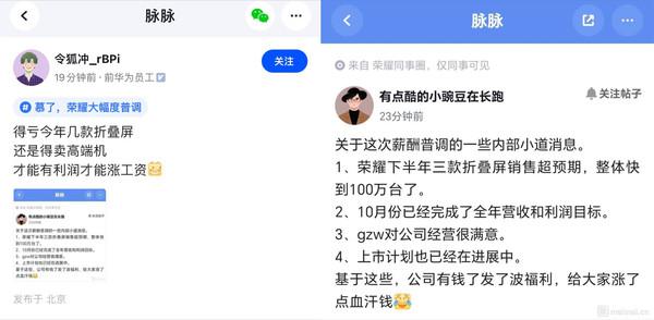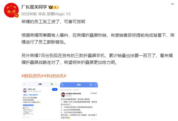 曝荣耀员工涨薪!因折叠屏销量超预期 卖出近 100 万台