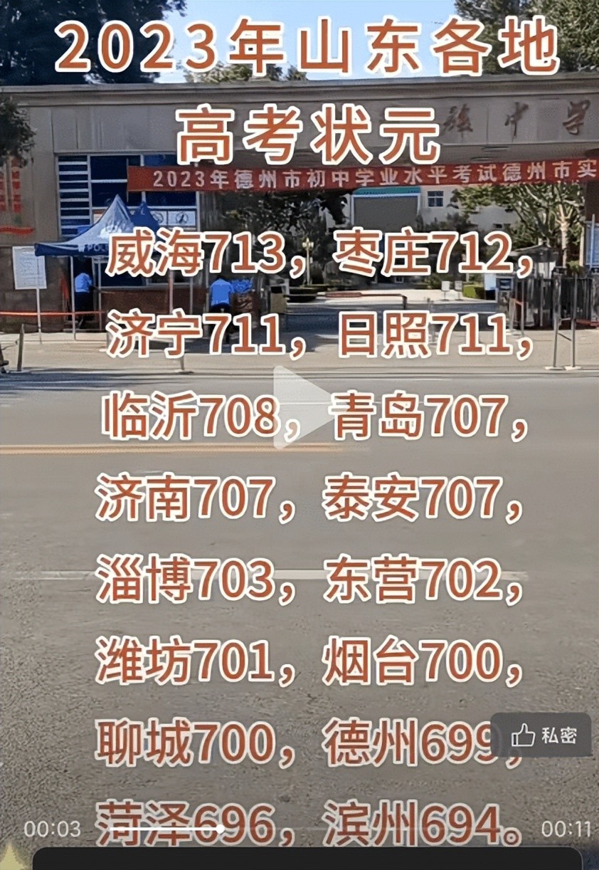 2023年山东高考状元 ,刘雅轩, 713分,来自威海文登新一中。榜眼,712分,来自枣庄三中。探花711分,来自济宁孔子学校。