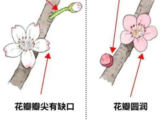公开资料显示,这两种花最主要的区别在于,梅花的花瓣是圆形的,而樱花是尖的,并且有开口。