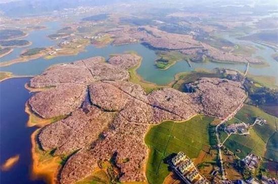 平坝樱花园因2014年贵安新区正式成立后划予贵安新区,所以现在大多称为贵安樱花园。坐落在红枫湖畔,占地24000余亩,场区地跨贵阳、安顺两市,处于两市的中间,距两地各约50公里,交通十分便利。