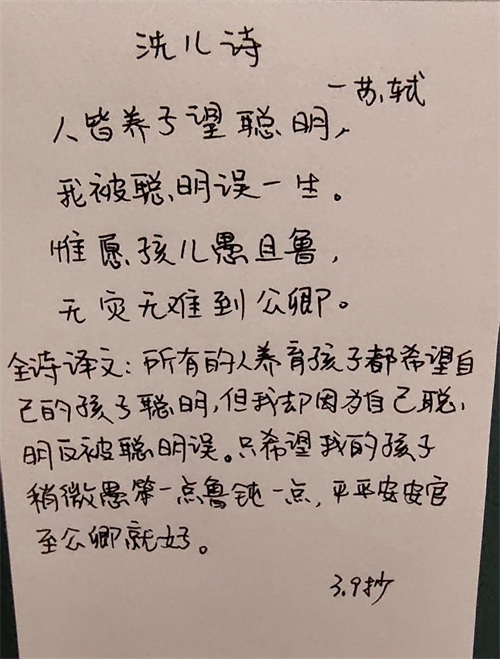 这两天孩子生病了,就想到了这首诗,希望我的孩子生病快好,往后少生病,平安健康长大。