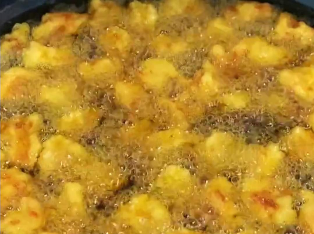 下面起锅多加点食用油,六层油温,将肉段儿下入锅中,中小火炸制金黄捞出。