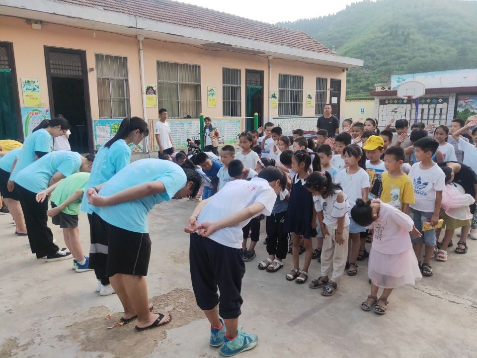 今天是支教的最后一天,支教队员和小朋友们都很舍不得。今天大家进行完课程之后,知道队员和小朋友们互相聊天,一起诉说心里话。很多小朋友非常舍不得支教队员,老师在支教队员来了之后,他们的假期得到了很大的改观,有很大的变化。上课的时候,我们和老师一起给学生们发了我们带来的一些彩笔,画板,小熊玩偶。