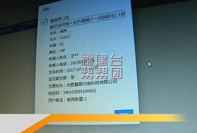 这份餐是G1611次乘客王先生的餐,随后商家会将这份外卖送到车站的12306网络订餐配送中心