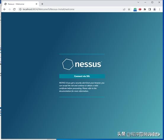 3、恭喜你,进行到这里Nessus程序基本安装完成。接下来就是相关配置及插件等安装。通过浏览器输入https://IP:8834/或https://主机名:8834/地址。