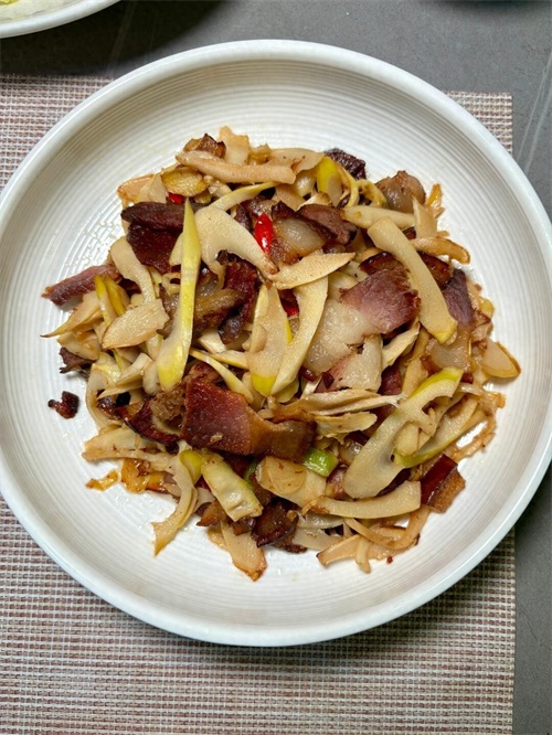小贴士:腊肉的咸香与鲜笋的清脆完美结合,每一口都是春天的味道!
