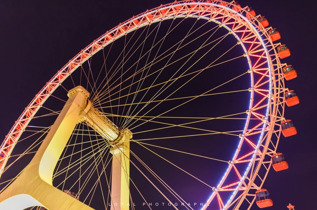 摩天轮旋转一周需要30分钟,到达最高处时,周边40公里景色一览无余,幸福感爆棚!美丽的大眼睛屹立在海河之中,气势恢宏、流光溢彩。