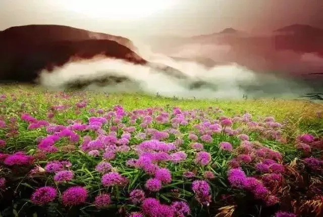 韭菜坪最佳观赏期是8月中下旬至10月上旬。每年9月,数万亩的野韭菜花肆意绽放,大片大片野性十足的紫海,让人震撼,如临仙境。