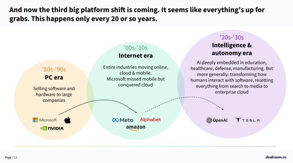 服务咨询机构 Dealroom 和 Flow Partners 最新公布的报告显示,全球科技行业正进入以 AI 和自动化为代表的新创新周期。科技创新周期大概每二十年一次,之前的两次创新周期分别发生在 PC 时代 ( 个人电脑的普及 ) 以及互联网时代 ( 包括向移动设备和云计算的转变 ) 。