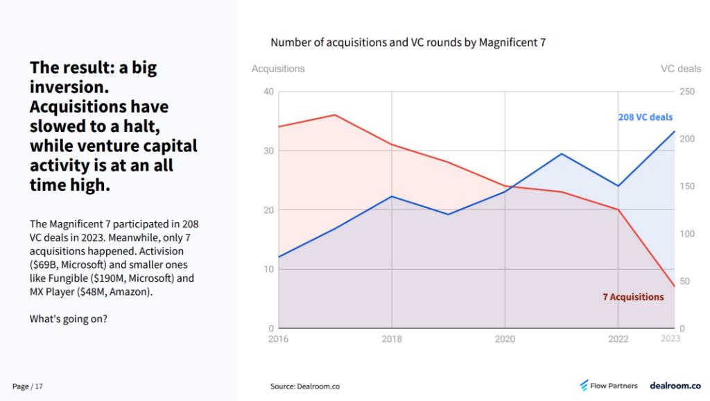 " 七姐妹 " 在风险投资领域的活动显著增加,尤其是那些已经有一定规模和业绩但尚未上市的公司,到 2025-2024 年,它们已成为最大的科技 VC。