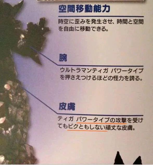 坚固的皮肤丝毫不畏惧,迪迦强力形态的任何攻击,可以打开时空间门自由穿梭。