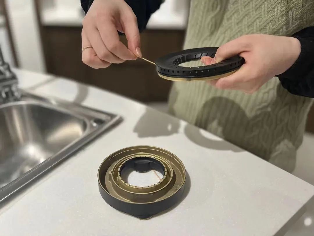 第一种情况是火孔堵塞而导致燃气燃烧不充分。燃气灶控制火头的出气孔经常会被汤汁堵住,造成不完全燃烧,导致火力不够强劲。解决办法是可以将灶头取下来,对着光,用牙签清理出气孔。灶头上堆积的碳化物和焦屑,可以用小细刷清除,也可以用细铁丝将出火孔一一刺通。