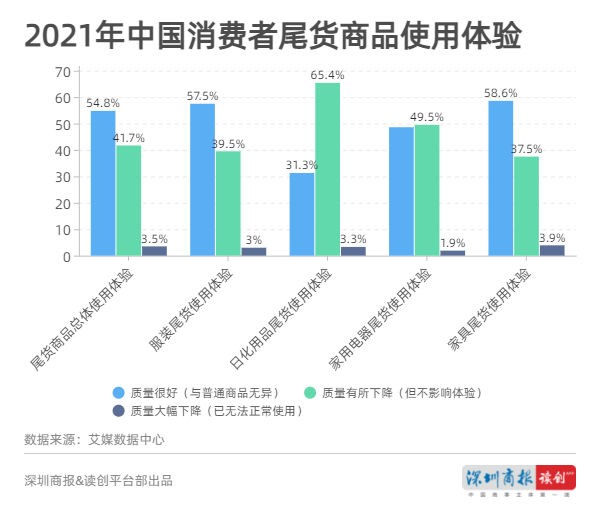 一般而言,选择”尾货“的消费者更加关注产品的使用价值。超五成消费者表示购买时首要关注尾货商品的使用价值和优惠幅度,而对品牌的关注度相对不高;96.5%的消费者表示尾货产品并不会影响使用且体验良好。