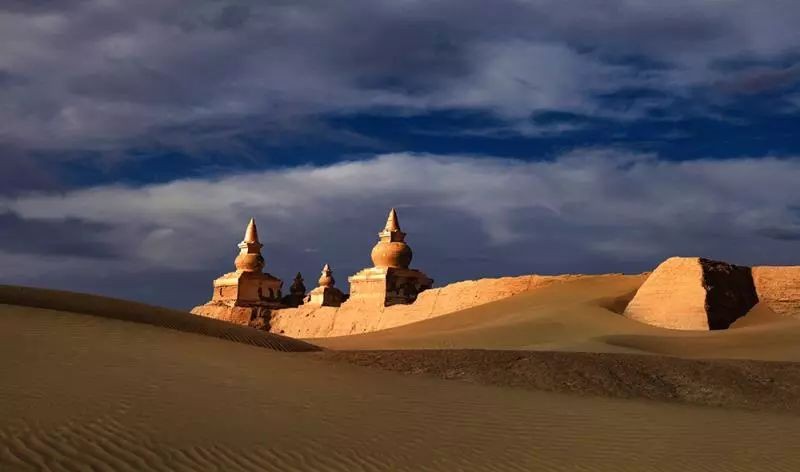 黑城遗址位于额济纳旗达来呼布镇南偏东方向约22公里(东经101.147度,北纬41.7647度)处,是古丝绸之路北线上现存最完整、规模最宏大的一座古城遗址。该城建于公元九世纪的西夏政权时期。公元1372年明朝大将冯胜攻破黑城后遭废弃。