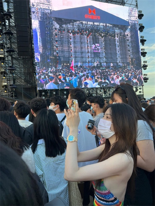 徐璐在音乐节现场尽情享受快乐,眼里带着笑意,心情十分愉悦。