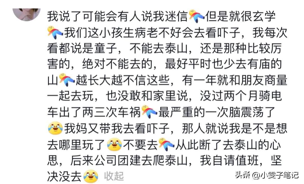 泰山:为啥说是阴间的入口?网友:山东人去了都得闭嘴!嘿,各位小伙伴,今儿咱们得聊聊一座山,一座让山东人去了都不敢随便说话的山――泰山!为啥呢?因为网上流传着一个说法,说泰山是阴间的入口,吓得我那是差点儿没敢写这篇文章!不过呢,我这个人嘛,就是爱凑热闹,越是这样的事儿,我越得给你们说道说道。咱们先说说这个“泰山是阴间入口”的说法是怎么来的。这事儿啊,得从古代的神话传说讲起。泰山,那可是咱们中国的五岳之首,被誉为“天下第一山”。在古代,泰山就被视为人间、仙界和地府三界的交汇之地,是通往地府的入口。这个说法在《山海经》里头就有记载,说“泰山之阳,乃天界之始;泰山之阴,则为地界之源”。哎呀妈呀,这话说得,简直就像是在讲一个神秘莫测的奇幻故事!不仅如此,泰山脚下还有个地方叫“蒿里山”,传说这地儿就是通向冥界的入口。古人常在这儿祭拜已故的亲人,寄托哀思。这样一来,泰山“阴间入口”的说法就更深入人心了。甚至有泰安人开玩笑说:“有西安在上,泰安在下,泰安之所以被称为鬼都,那可不是浪得虚名啊!”说到泰安人,我这儿得插一嘴。我有个朋友就是泰安人,他跟我说啊,他们泰安人爬泰山的时候,从来都不敢随便说话。为啥呢?怕说错话招来不干净的东西呗!他说啊,他小时候跟爷爷去爬泰山,爷爷一路上都叮嘱他:“别乱说话,别惹事儿,咱就是来拜拜山神,祈求平安的。”这话听得我是又好奇又害怕,心想:这泰山到底有啥神秘的?其实啊,泰山之所以让人觉得神秘,除了这些传说之外,还跟它的地形地貌、人文历史有关。泰山巍峨壮观,自然景观和人文景观交相辉映,让人不禁心生敬畏。而且啊,泰山还是道教、佛教、儒学等多种文化的交汇之地,各种宗教活动和民间信仰都在这里得到了体现。这样一来,泰山就更显得神秘莫测了。不过呢,话又说回来,咱们也不能光听这些传说就吓得不敢去了。毕竟啊,泰山还是一座著名的旅游胜地,每年都吸引着成千上万的游客前来观光旅游。我自己也去过泰山,说实话啊,那景色是真的美!站在山顶上看下去,那真是“会当凌绝顶,一览众山小”啊!当然啦,去泰山玩也得注意点儿。毕竟啊,这地方可是有着深厚的文化底蕴和宗教色彩的。咱们去旅游的时候啊,还是得尊重当地的风俗习惯和宗教信仰。别乱说话、别乱拍照、别乱摸文物啥的。不然啊,万一真的招来了什么不干净的东西,那可就得后悔了!说到这儿啊,我得提醒各位一句:网上这些说法啊,虽然听起来挺吓人的,但咱们还是得理性看待。毕竟啊,这些都是传说和故事罢了。咱们去旅游的时候啊,还是得相信科学、尊重事实、文明旅游。