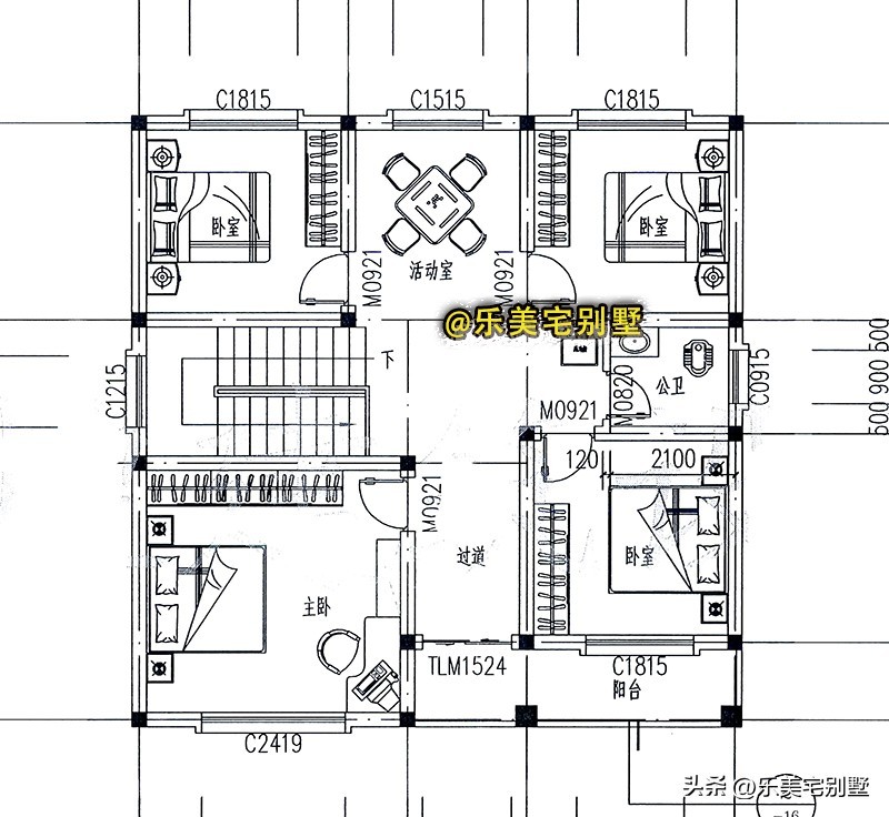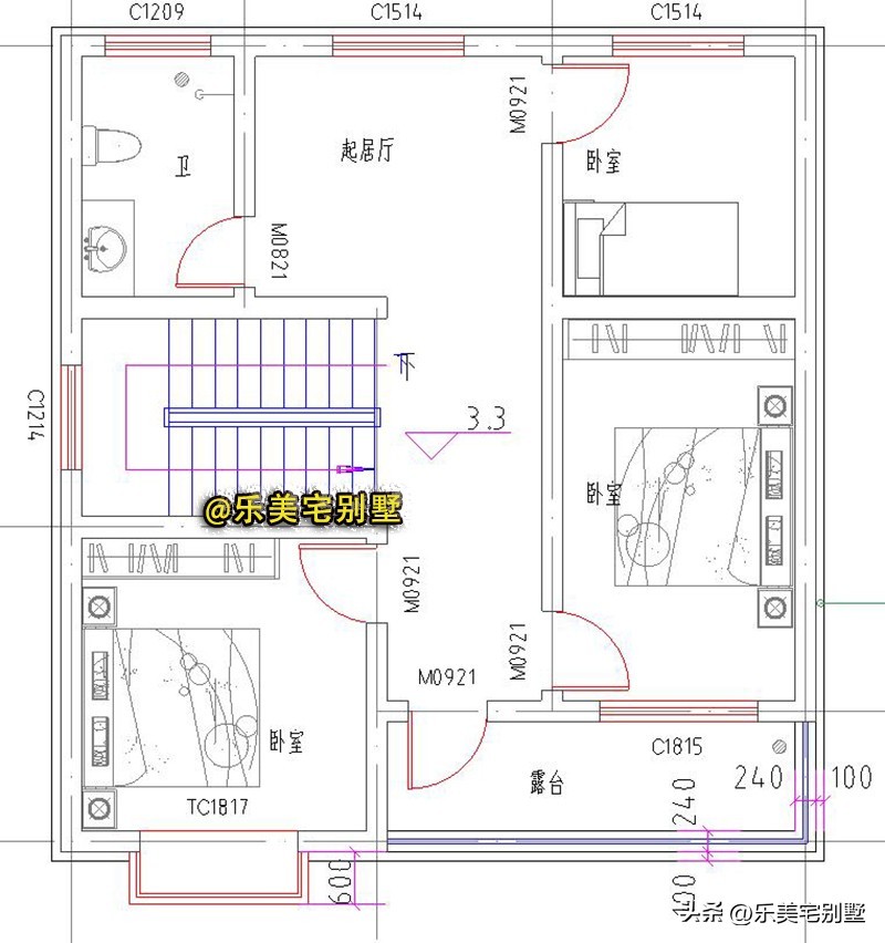 二 层: 客厅(带阳台)、主卧(带阳台、书房)、2次卧、卫生间