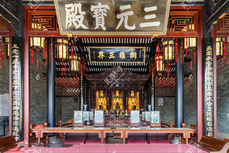 三元宫正中位置供奉的三元大帝,他们是中华民族的始祖,尧帝、舜帝、禹帝三位大帝,.三位大帝分别被称作上元,中元和下元,他们的生日是农历正月十五,七月十五和十月十五,称作上元节,中元节和下元节。三元宫是广州流行的上元诞、中元诞、下元诞的宗教民间节庆的主要活动场地。历史上最多的一日参神者达十余万人。