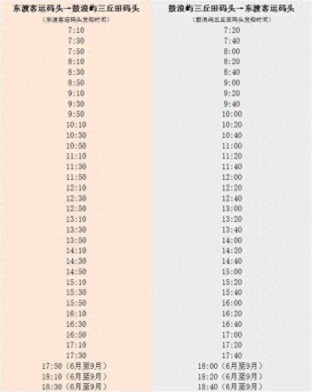 东渡客运码头往返三丘田码头日间航线