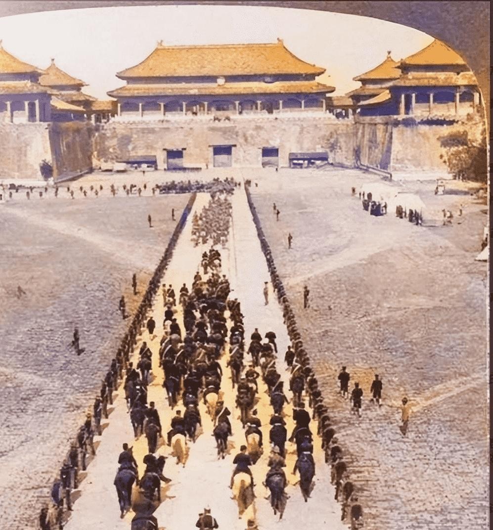 八国联军占领北京城后,在紫禁城举行了盛大的阅兵式。