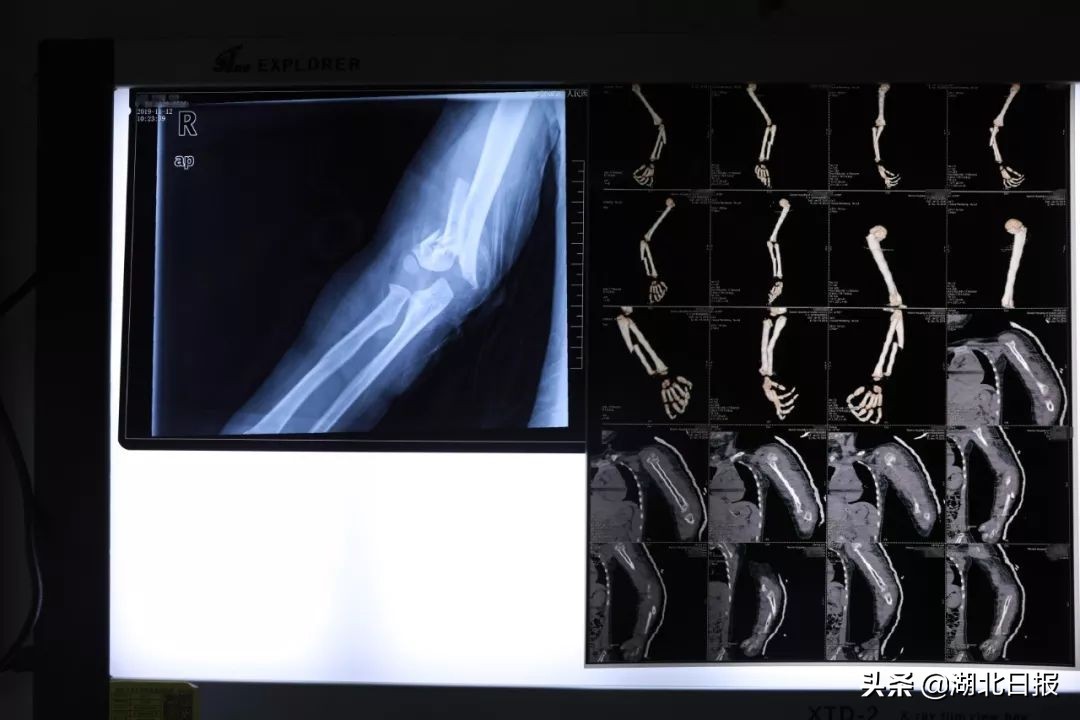 该院急诊科杜贤进副教授接诊后,发现孩子双侧手臂及右腿多处骨折,两处骨折甚至刺穿了皮肤、骨骼外露,幸运的是孩子意识尚且清醒。