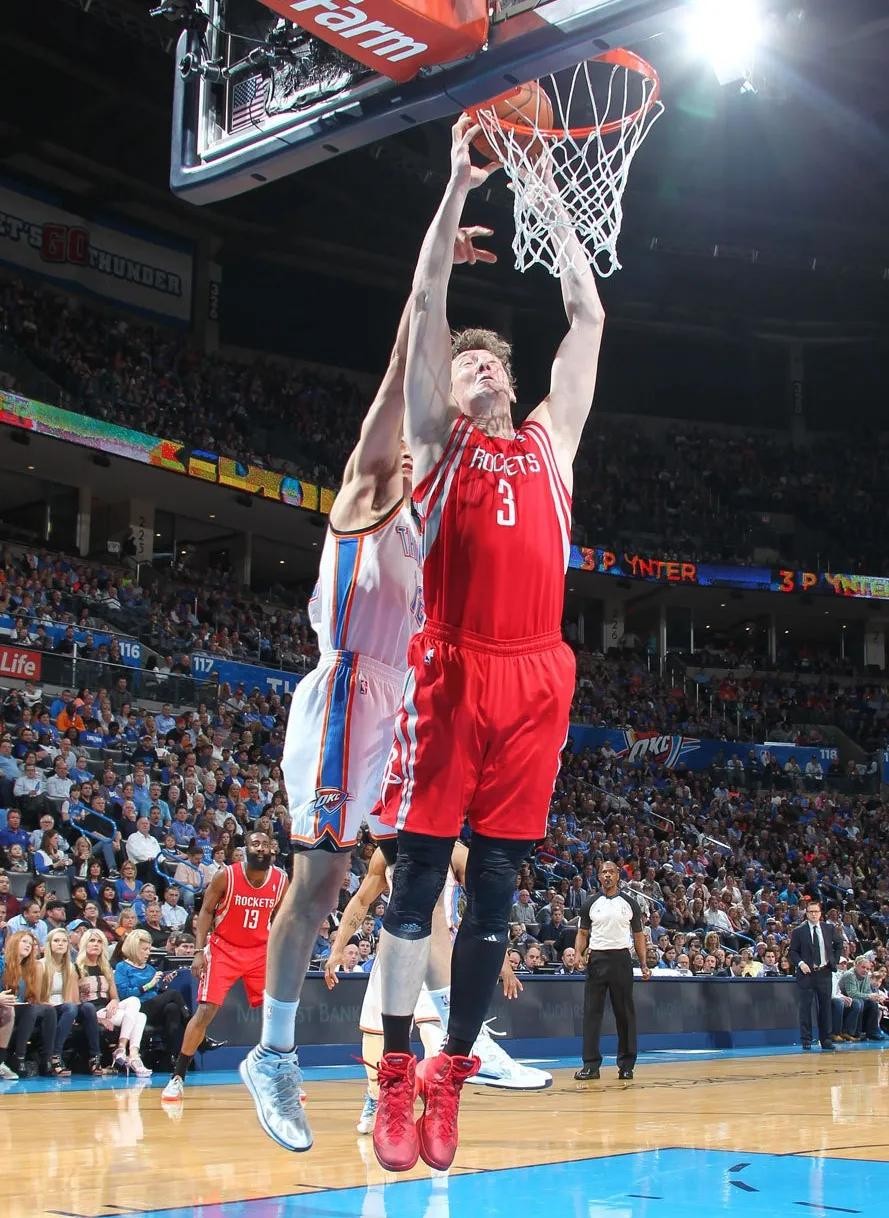13-14赛季,阿西克因为伤病只出战了48场比赛,而且火箭队休赛期招募来了德怀特霍华德,阿西克又回到替补,上场时间自然也缩短,场均贡献5.8分7.9篮板0.8盖帽,也是因为伤病影响状态出现了些许下滑。