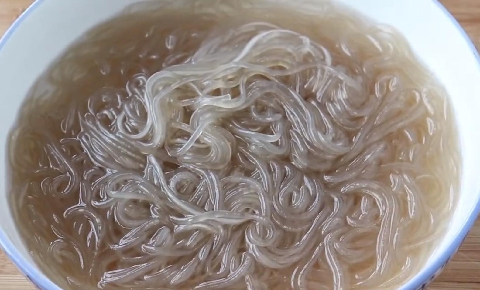 7,粉条煮好之后沥干水分直接放入碗中搅拌一下