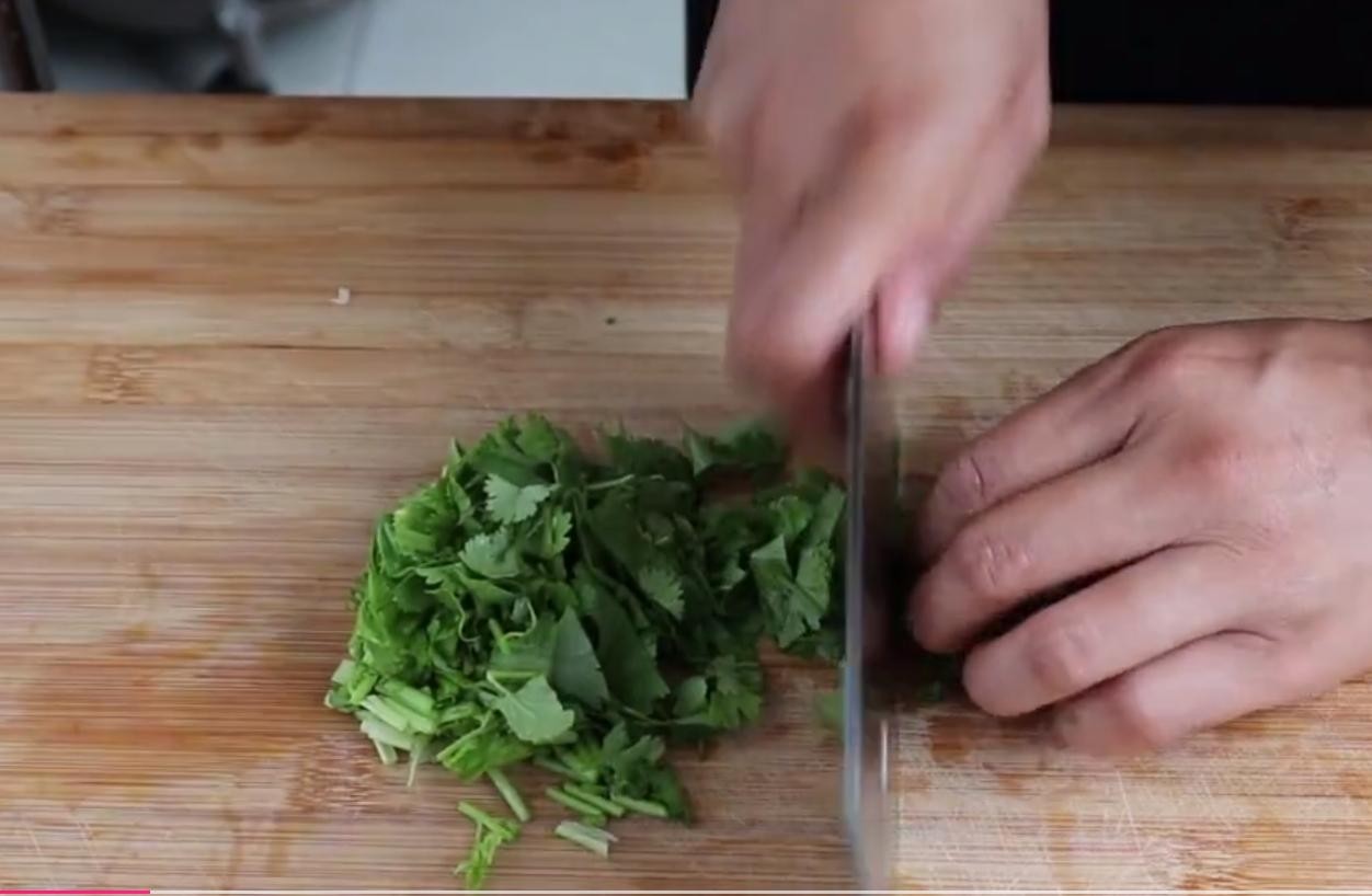 3,在主备一点香菜同样是清洗干净切碎,香菜是必不可少的,但是有不爱吃香菜的就不必勉强了